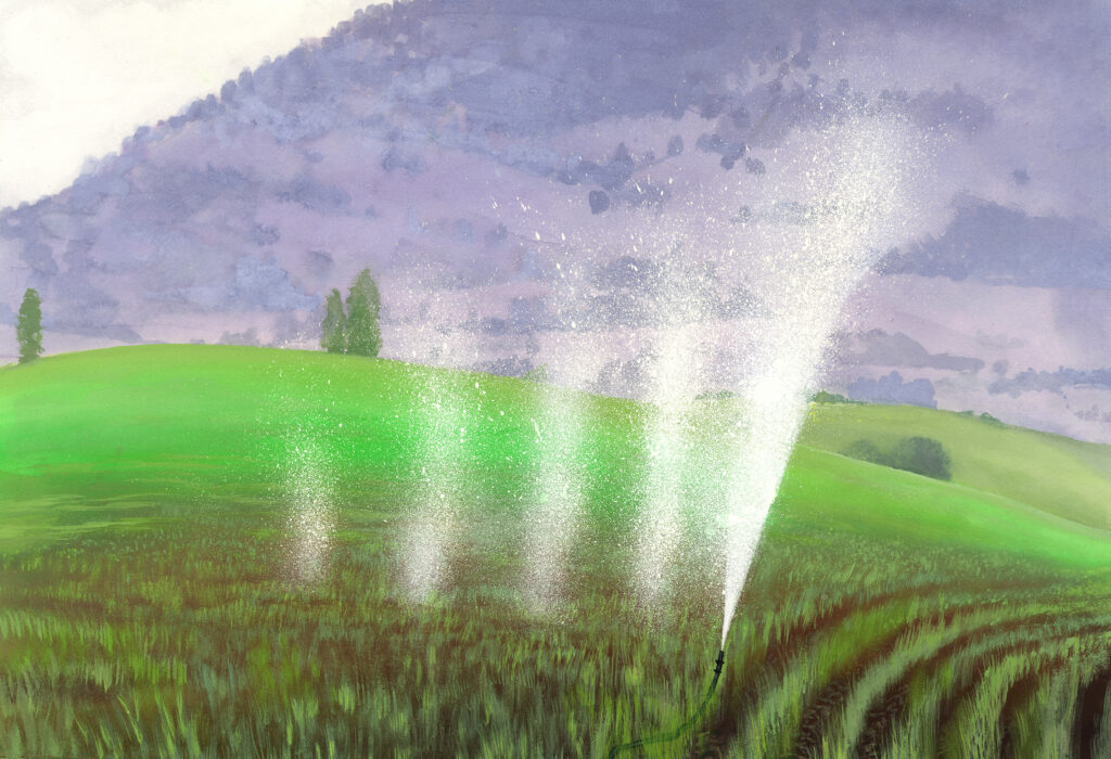 Cet absolu, Maïté Grandjouan le déroule depuis une bobine qui serpente à loisir entre le littéral et le mythologique, la réalité et le rêve, une forme initiale et son reflet, l’abîme et la mise en abyme. Les trous, les grottes, les grillages, les maisons creuses, les routes aveugles et les tunnels s’offrent en miroirs aux larges ciels d’aube et de crépuscule. Les cloisons, tantôt des baies, tantôt des fentes, sont transparentes. Pluie et brasier jouent les superpositions. Chaque bord, chaque centre s’exposent toujours à l’incendie, à l’étrangeté et à la violence du doute.